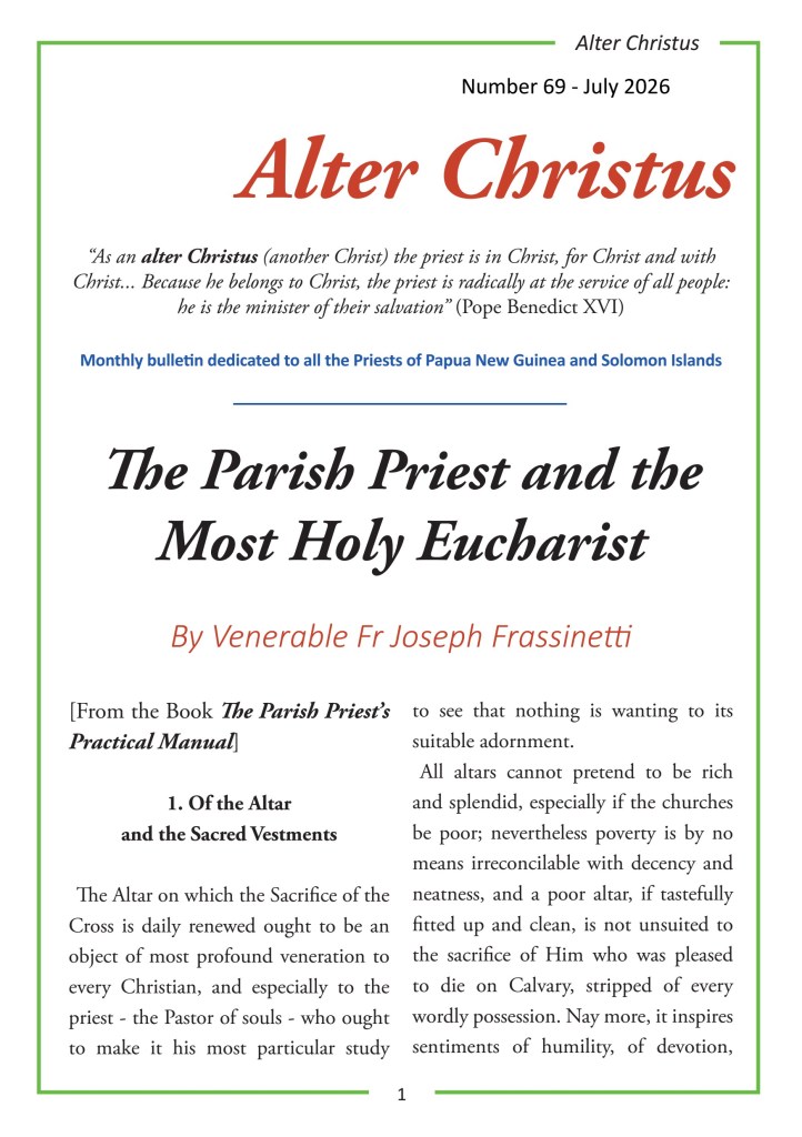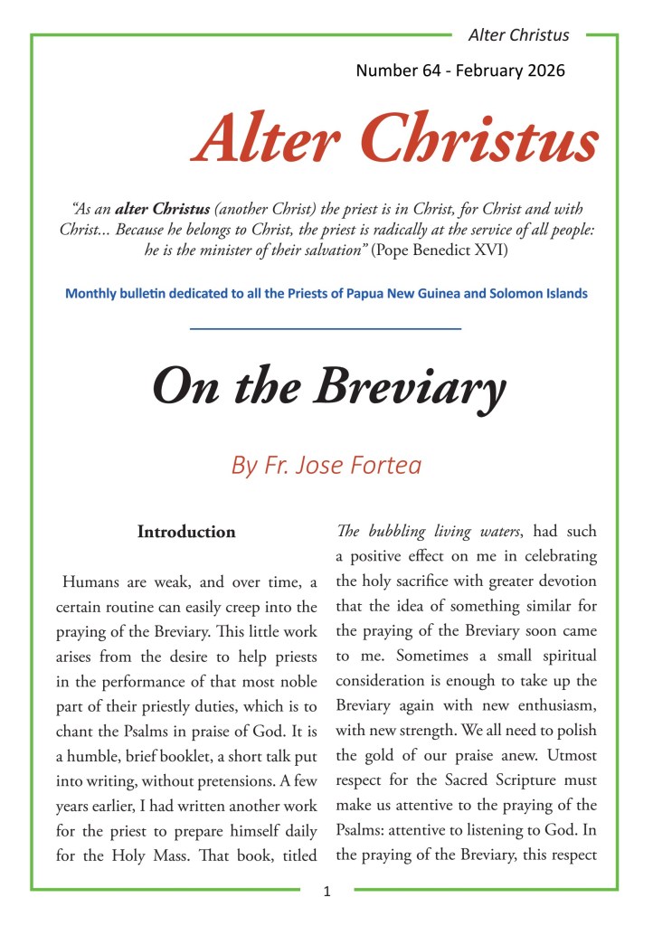 Dear Father, below you will find all the Bulletins “ALTER CHRISTUS” that you should receive monthly in your Diocese. In case you want also a digital copy, we upload them here!